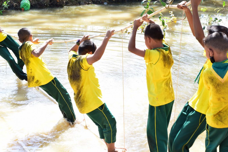 ได้แก่ซุ้มเขาวงกต ปลาหมอแถก บันไดลอยฟ้า และสะพานลิง พร้อมได้ประกอบอาหารเที่ยงร่วมกัน