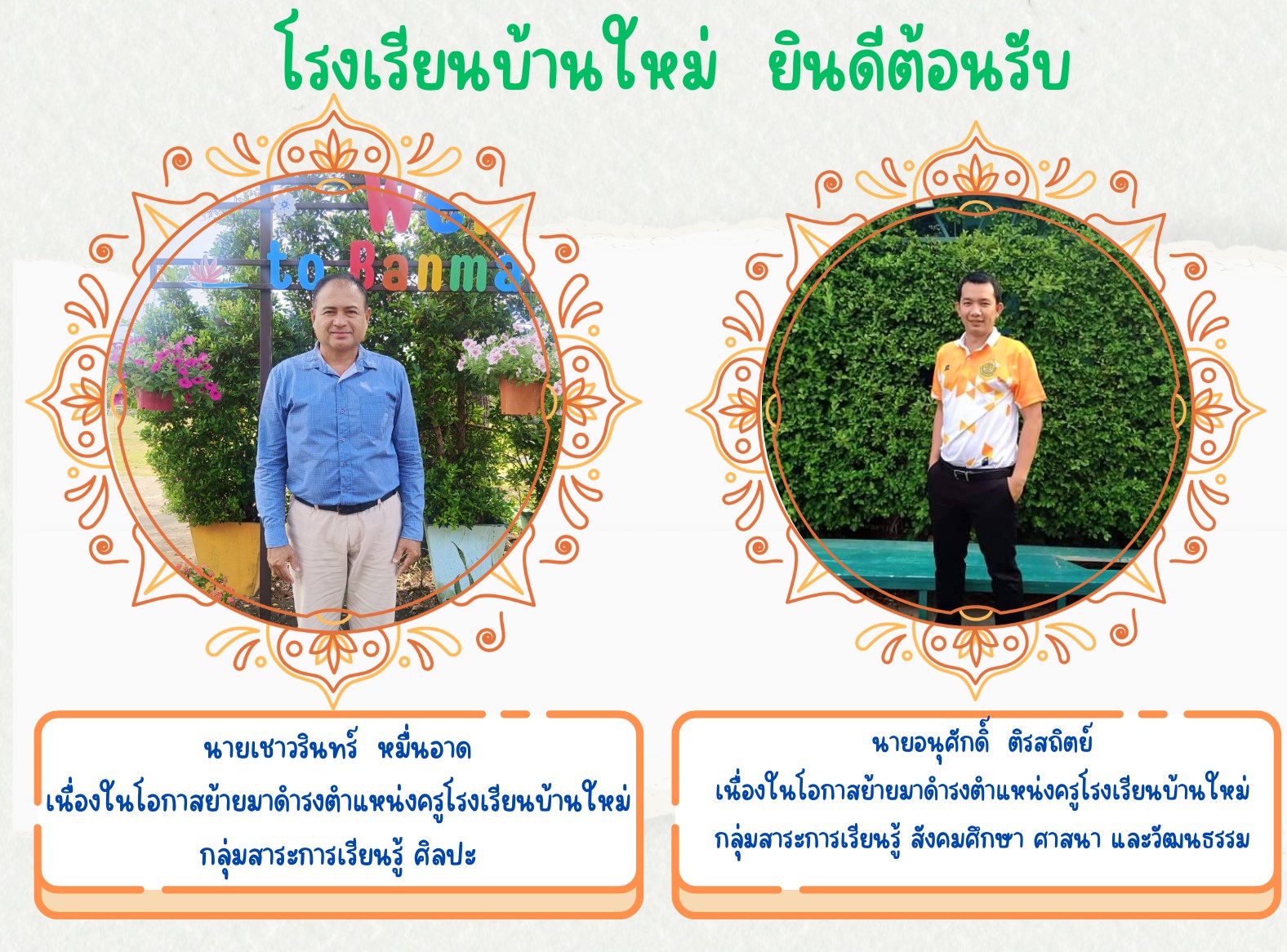 ยินดีต้อนรับ เนื่องในโอกาสย้ายมาดำรงตำแหน่งใหม่ของข้าราชการครูและบุคลากรทางการศึกษา